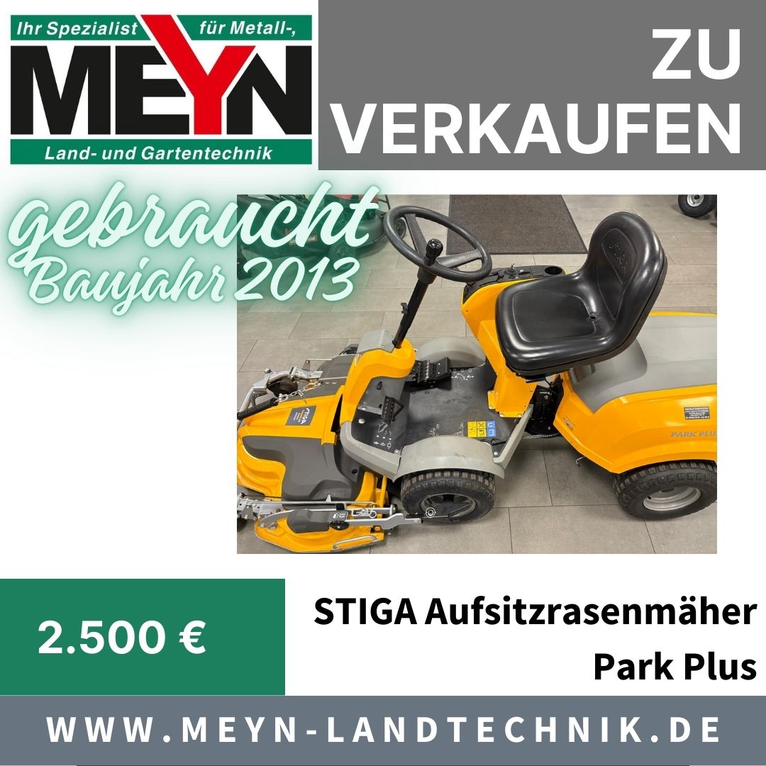 Angeboten wird hier ein gebrauchter Aufsitzrasenmäher der Marke Stiga Modell Park Plus inklusive elektrischem Mähdeck 100 Combi. Baujahr 2013.