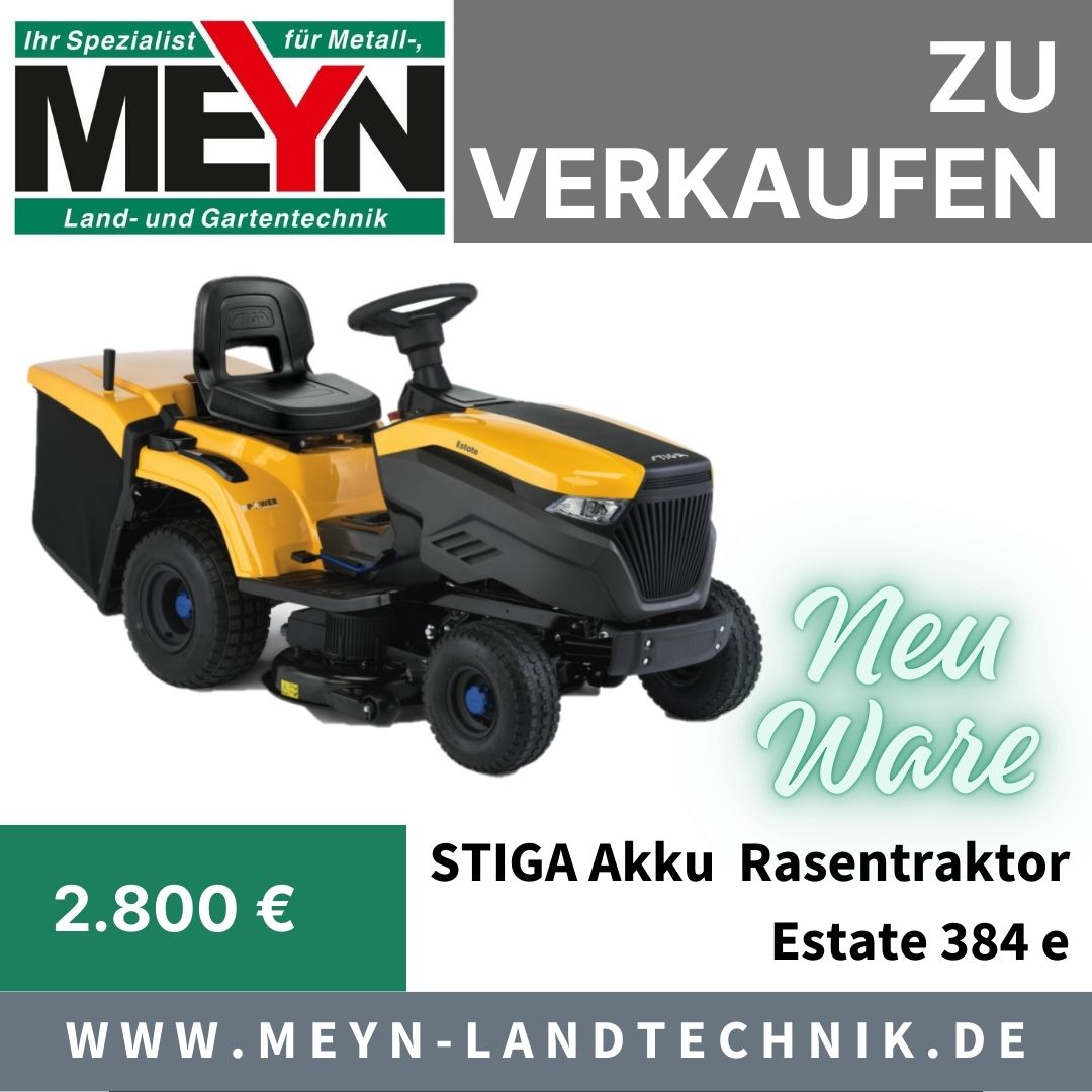 Angeboten wird hier ein neuer Akku-Rasentraktor der Marke Stiga Modell Estate 384 e mit 84 cm Schnittbreite.